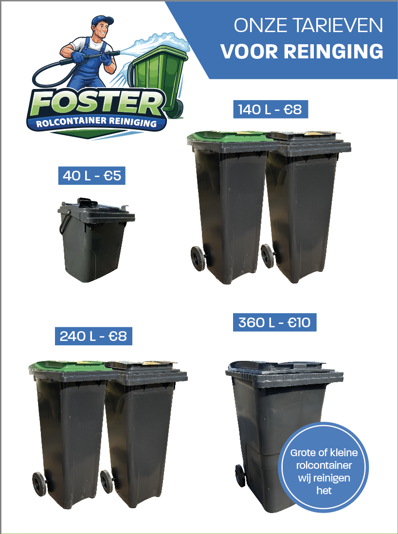 Bij Foster Rolcontainer Reiniging werken we met transparante en eerlijke tarieven, zodat u altijd weet waar u aan toe bent. Geen verborgen kosten, enkel een professionele reiniging en desinfectie van uw rolcontainer.